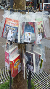 Ook Jan Verhagen van boekhandel Van Piere in Eindhoven kijkt terug op een mooi feest in zijn boekhandel. “De gehele dag door hebben we tal van activiteiten georganiseerd. Loterijen, muziek en we sloten af met de boekpresentatie van de lokale bestseller Transformatie Strijp-S, over de geschiedenis van Philips grootste industrieterrein.” Het hoogtepunt van de dag was echter ook voor Jan een verrassing. Vlak na de lunch werd hij benaderd met de vraag of hij wilde helpen met de formatie van een hart van boeken voor een huwelijksaanzoek. “Het moest allemaal wel snel, want de beoogde bruid is een fervent lezer en was al onderweg naar de boekhandel. Gelukkig waren we net klaar toen ze nietsvermoedend binnenkwam en zonder moment van vertwijfeling zei ze ‘Ja!’”